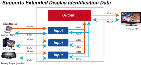 The IHD-420 series adopts Automatic EDID (Extended Display Identification Data) Copy function to make smooth video distribution over different types of display units. EDID is greatly important as it contains information about resources’ manufacturer names, serial numbers, product types, maximum image sizes, color characteristics, factory pre-set timings, frequency range limits, etc. In some cases, display problems may occur due to incorrect EDID communication between the display monitor and the transmitting unit or inappropriate EDID data programmed by display manufacturers. Therefore, with Automatic EDID Copy function, the IHD-420 series allows the system to copy EDID information from EDID compliant displays and assures accurate display performance.