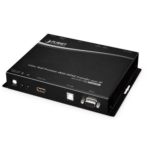 PLANET IHD-420 HDMI/USB Extender Video Wall over IP with PoE delivers a great 4K video distribution solution with refreshing 60 frames per second , waking an efficient and effective advertising deployment. The IHD-420 series is the combination of the transmitter, IHD-420PT, and the receiver, IHD-420PR. They can be used as an audio, video and IR extender over IP, and applied to point to point, point to multi-point, multi-point to multi-point and eye-catching video walls of up to 16 by 8 displays.